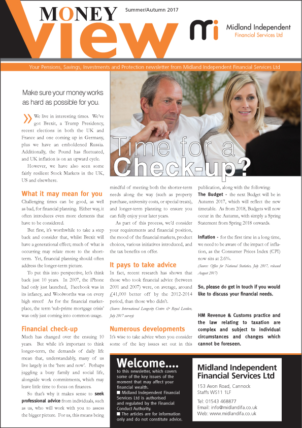 Your pensions, savings, investments, mortgages and protection newsletter from Midland Independent Financial Services Ltd